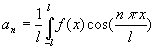 Els termes an valen 0 en tots els casos. La funció cos(x) és parell i la funció dent de serra és imparell. Com que hem de calcular la integral definida entre -l i l, aquesta sempre serà 0 (La demostració d'això no és per aquí).
