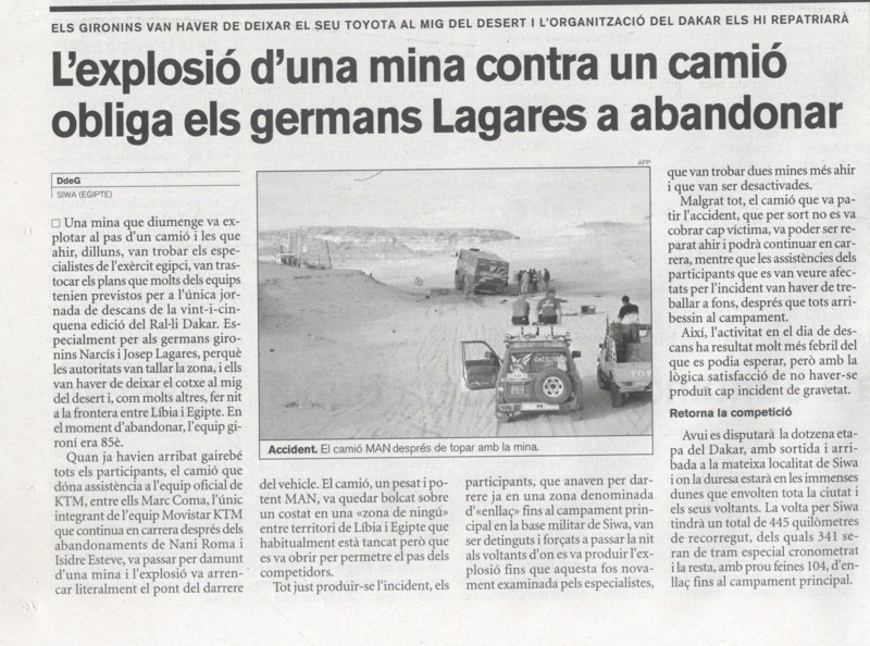 30/10/02 PUNT-DIARI. Els gironins Lagares destaquen la duresa del Dakar, però confien arribar al final de la cursa