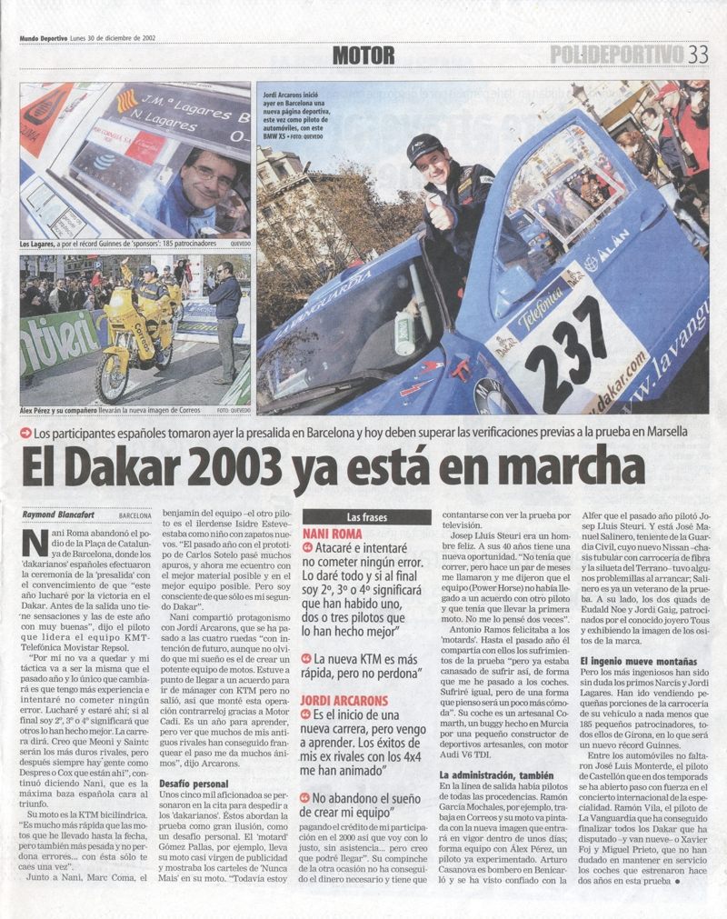 30/12/02 MARCA. El Dakar 2003 ya está en marcha