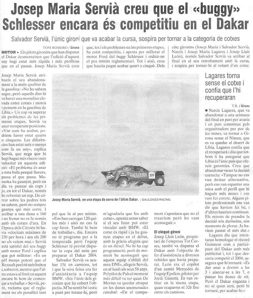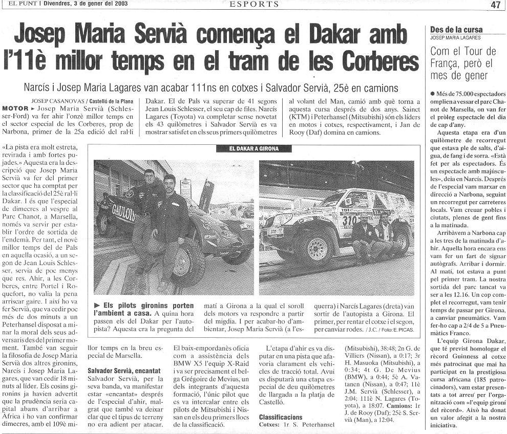 03/01/03 PUNT-DIARI. Narcís i Josep Mª Lagares van acabar 111ns en cotxes...