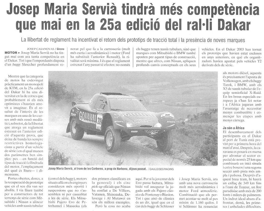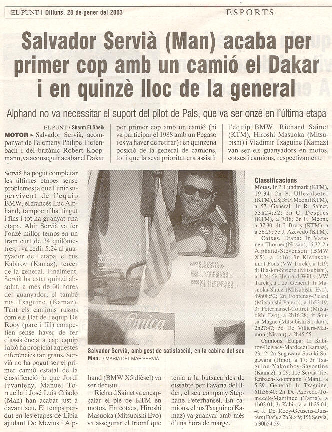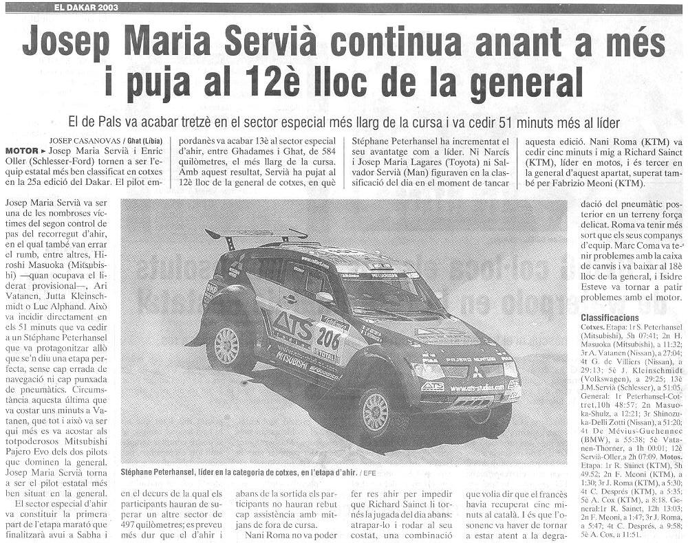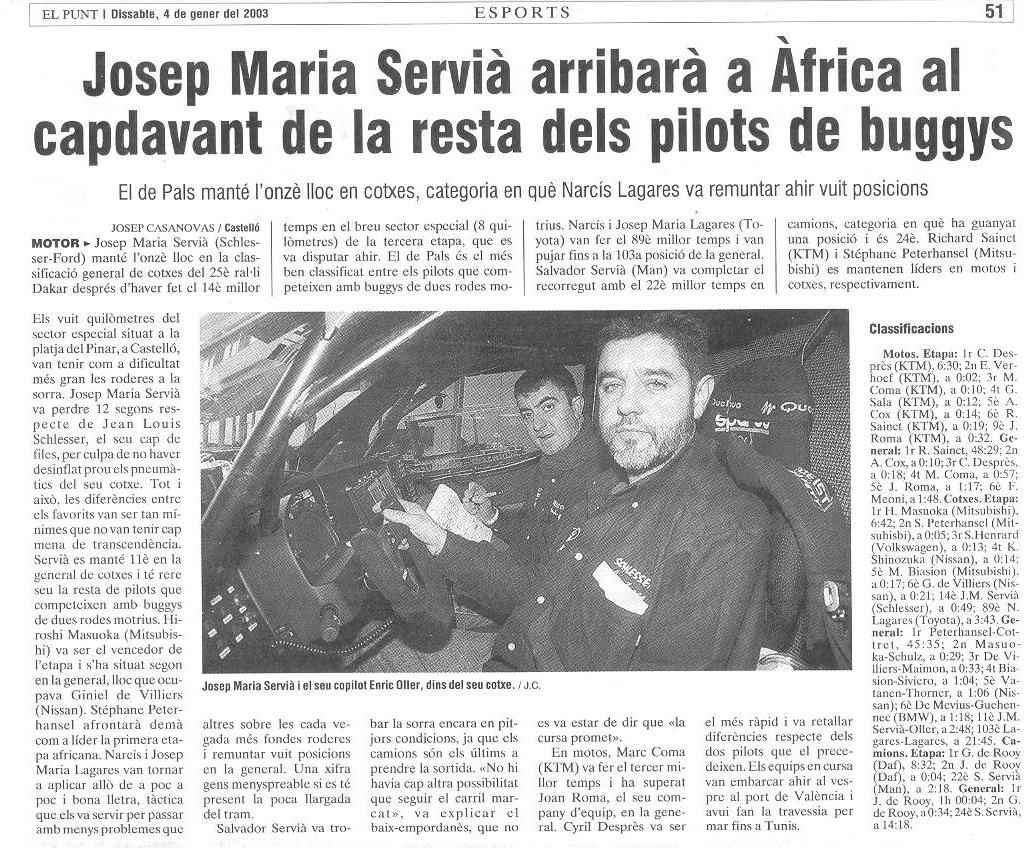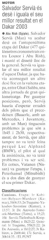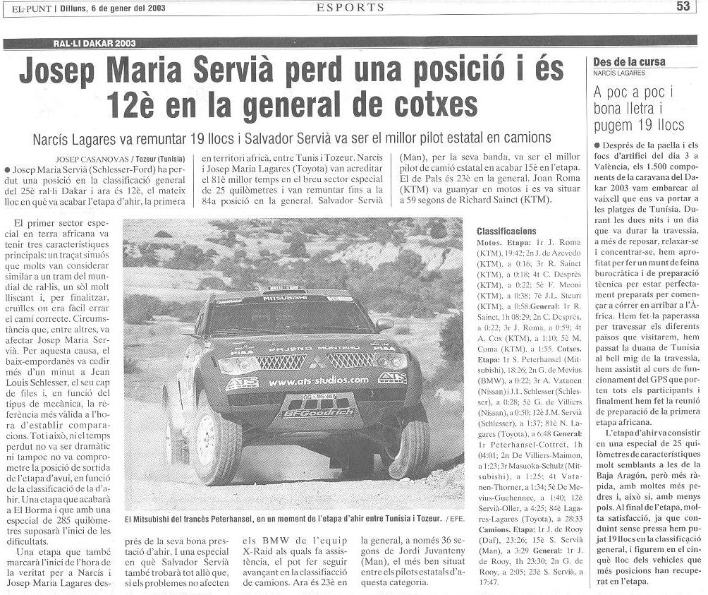 10/01/03 PUNT-DIARI. Servià puja al desè lloc del Dakar...