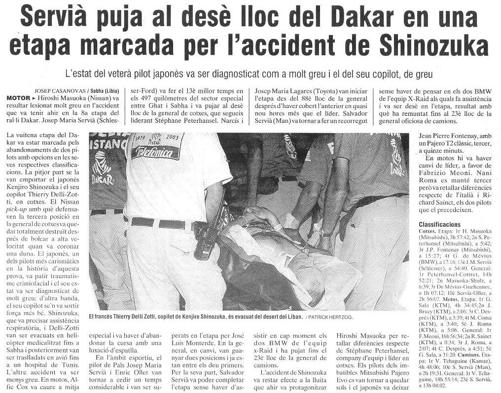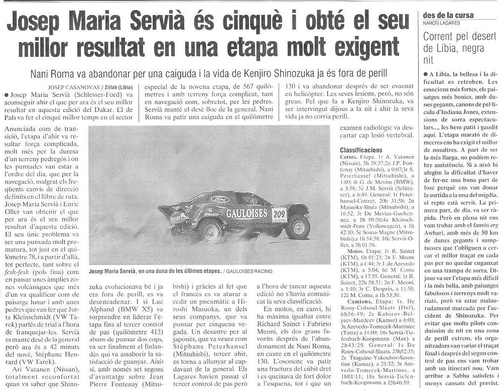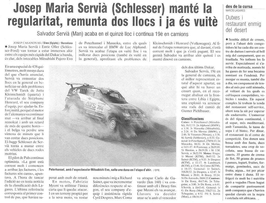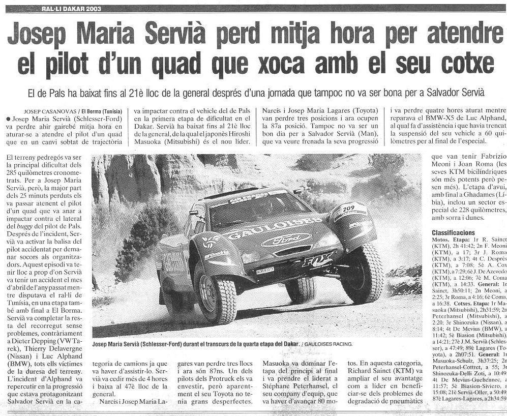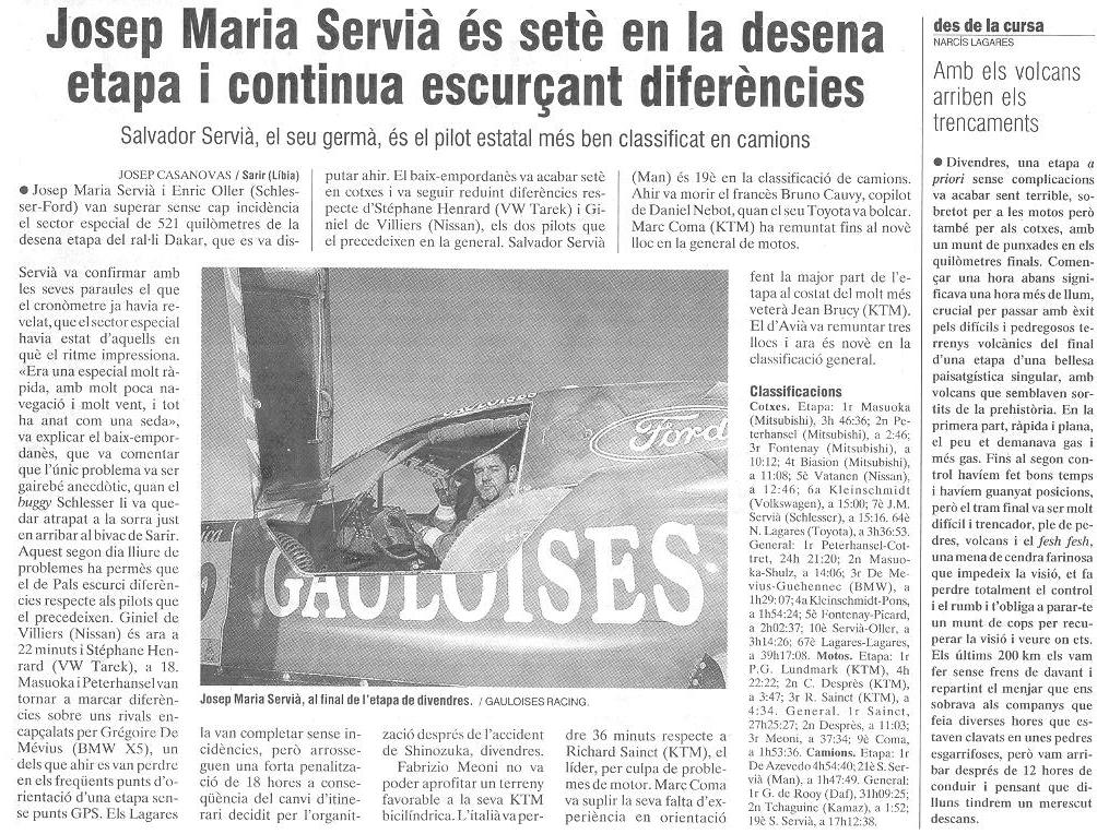 10/01/03 PUNT-DIARI. Servià puja al desè lloc del Dakar...