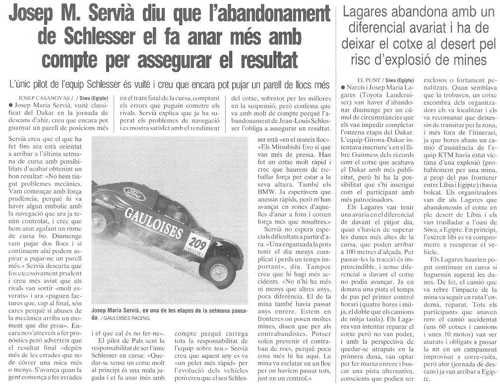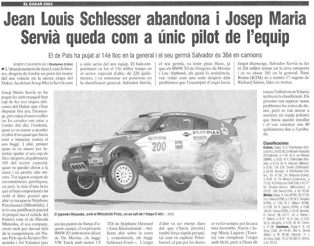 13/01/03 PUNT-DIARI. Josep Mª Servià (Schlesser) manté la regularitat, remunta dos llocs...