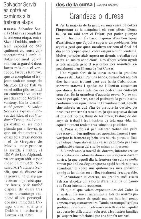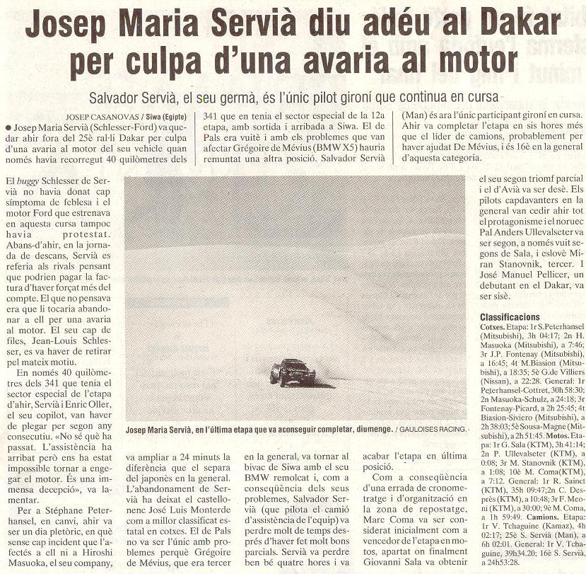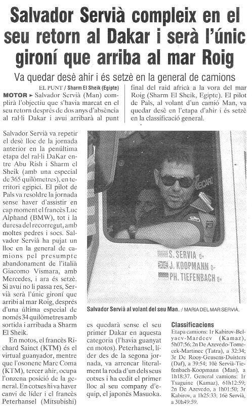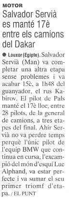 19/01/03 PUNT-DIARI. Salvador Servià compleix en el seu retorn al Dakar...