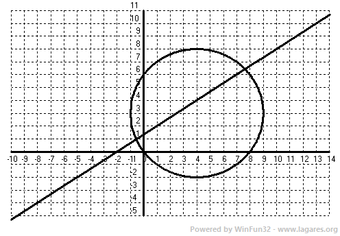 10-Quina és la posició relativa entre la circumferència de centre `(4,3)` i radi `5` i la recta `2x-3y+4=0`.