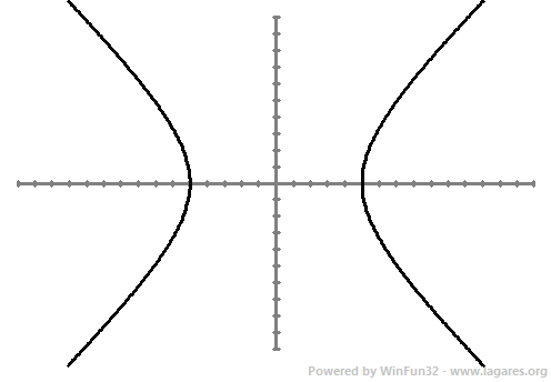 On `a` és el punt de tall amb l'eix d'abscisses `=> a= 5`. `c` és la distància focal `=> c=6`. I, finalment, `b^2=c^2-a^2=6^2-5^2=36-25=11`. La qual cosa vol dir que l'equació d ela hipèrbola és: ![]() |