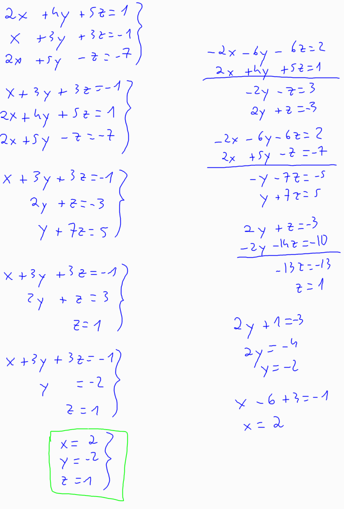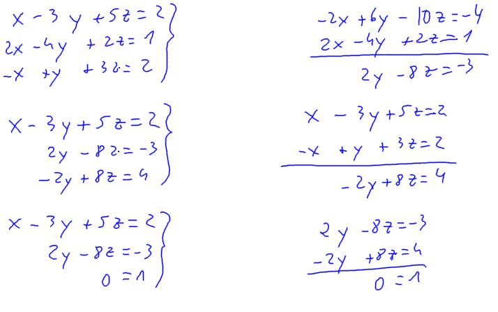 Sistemes d'equacions - Mètode de Gauss Què li passa (i quč hem de fer?) segons sigui d'un tipus o d'un altre, un sistema d'equacions lineals quan el resolem pel mètode de Gauss? Si el sistema és compatible determinat ![]() Si el sistema és compatible indeterminat ![]() Si el sistema és incompatible ![]() |