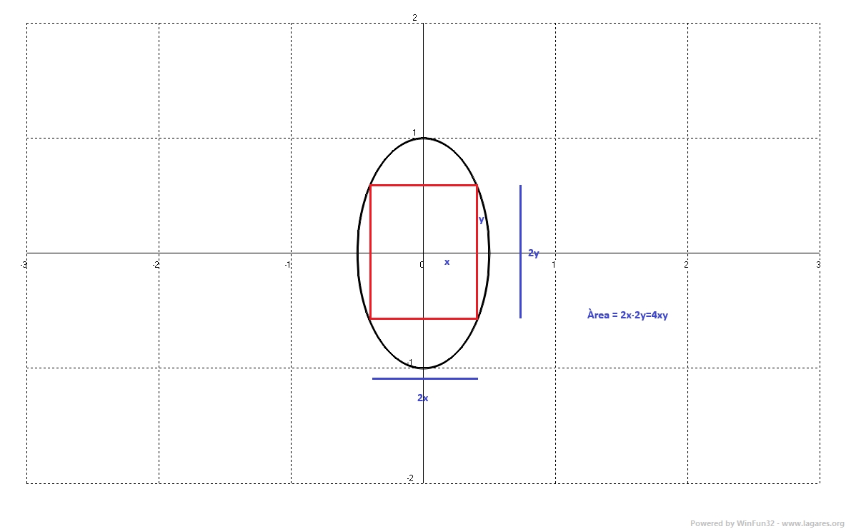 4-De tots els rectangles inscrits en l'el·lipse `4x^2+y^2=1`, trobeu el que té àrea màxima. ![]()