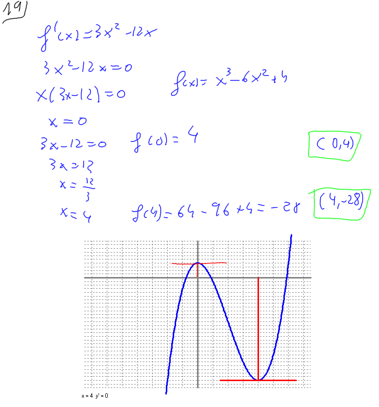 2-En quins punts de la gràfica de la funció f(x) = x3 -6x2 +4 tenen tangent paral·lela al l'eix de les X?