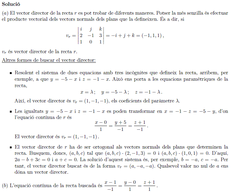 b) Calculeu l'equació contínua de la recta paral·lela a r que passa pel punt