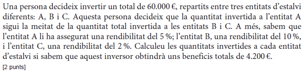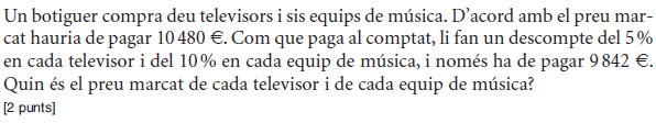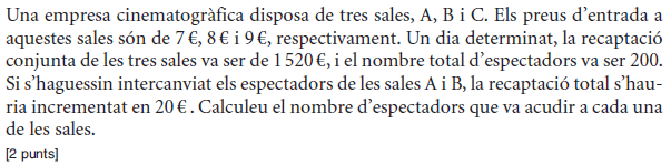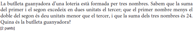 Sistemes d'equacions y resolució de problemes - 2009 - juny - sèrie 4 - 2. ![]() - 2009 - Juny - sèrie 4 - 4. ![]() - 2009 - Setembre - sèrie 1 - 2. ![]() - 2009 - Setembre - sèrie 1 - 4. ![]() - 2010 - juny - sèrie 1 - 3. ![]() - 2010 - Juny - sèrie 1 - 6. ![]() - 2010 - Juny - sèrie 4 - 1. ![]() - 2010 - Juny - sèrie 5 - 1. ![]() - 2010 - Setembre - sèrie 2 - 1. ![]() - 2011 - Juny - sèrie 1 - 1. ![]() - 2011 - Juny - sèrie 4 - 5. ![]() - 2012 - Juny - sèrie 1 - 4. ![]() - 2012 - Juny - sèrie 3 - 6. ![]() - 2012 - Setembre - sèrie 4 - 3. ![]() - 2013 - Setembre - sèrie 1 - 2. ![]() - 2014 - Setembre - sèrie 5 - 1. ![]() - 2014 - Setembre - sèrie 5 - 4. ![]() - 2015 - Juny - sèrie 2 - 2. ![]() - 2015 - Juny - sèrie 4 - 1. ![]() - 2015 - Setembre - sèrie 5 - 1. ![]() - 2016 - Juny - sèrie 3 - 3. ![]() - 2016 - Juny - sèrie 3 - 5. ![]() - 2016 - Setembre - sèrie 1 - 1. ![]() - 2017 - Juny - sèrie 1 - 4. ![]() - 2017 - Juny - sèrie 5 - 2. ![]() - 2017 - Juny - sèrie 5 - 3. ![]() - 2017 - Setembre - sèrie 2 - 4. ![]() |