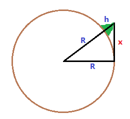 Teorema de Pitàgores `=> R^2 + x^2 = (R+h)^2`