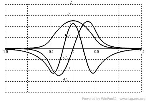 Solució analítica de l'equació d'Schrödinger independent del temps per al potencial d'un pou quadrat Física Cuántica "Eisberg-Resnick" (1974-Ed. Limusa) $$ V(x)=\begin{cases} V_0 \qquad x < -\frac{a}{2} \quad \text{o} \quad x > \frac{a}{2}\\ \\ 0 \qquad -\frac{a}{2} < x < \frac{a}{2} \end{cases} $$ ![]() El potencial 0 L'equació d'Schrödinger independent del temps: $$ -\frac{\hbar^2}{2m} \frac{d^2\varphi(x)}{dx^2} = E\varphi(x) $$ Les solucions de les funcions d'ona, `\Psi(x,t)`, són: $$ \varPsi(x,t)=\varphi(x)e^{-iEt/\hbar} $$ Pels arguments de plausibilitat que van portar a l'equació d'Schrödinger se sap que la funció d'ona d'una partícula lliure és: (*) $$ \varPsi(x,t)=cos(kx-\omega t) + i sin(kx - \omega t) $$ Expresant-ho com una exponencial complexa: $$ \varPsi(x,t)=e^{i(kx-\omega t)} = e^{ikx} · e^{-i\omega t} $$ El nombre d'ona `k` i la freqüència angular són: $$ k=\frac{p}{\hbar}=\frac{\sqrt{2mE}}{\hbar} \qquad \text{i} \qquad \omega = \frac{E}{\hbar} $$ $$ \varPsi(x,t)=e^{i(kx-\omega t)} = e^{ikx} · e^{-iEt/\hbar} $$ Si ho comparem anb la solució general tenim: $$ \varPsi(x,t)=\varphi(x)e^{-iEt/\hbar} = e^{ikx} · e^{-iEt/\hbar} $$ El que implica que: $$ \varphi(x) = e^{ikx} $$ Amb tot això: La solució general per a la regió interior del pou és (combinació lineal de les solucions anteriors): $$ \varphi(x)=A e^{ik_1x}+Be^{-ik_1x} \qquad \text{on} \qquad k_1=\frac{\sqrt{2mE}}{\hbar} \qquad \text{per} \qquad \frac{-a}{2} < x < \frac{a}{2} $$ Es pot demostrar que això és equivalent a: (1) $$ \varphi(x)=A' sin(k_1x) + B' cos(k_1x) \qquad \text{on} \qquad k_1=\frac{\sqrt{2mE}}{\hbar} \qquad \text{per} \qquad \frac{-a}{2} < x < \frac{a}{2} $$ Per a les solucions a les regions externes i fent servir raonaments equivalents, es pot demostrar: (**) $$ \varphi(x)=C e^{k_{11}x}+De^{-k_{11}x} \qquad \text{on} \qquad k_{11}=\frac{\sqrt{2m(V_0-E)}}{\hbar} \qquad \text{per} \qquad x < \frac{-a}{2} $$ i $$ \varphi(x)=F e^{k_{11}x}+Ge^{-k_{11}x} \qquad \text{on} \qquad k_{11}=\frac{\sqrt{2m(V_0-E)}}{\hbar} \qquad \text{per} \qquad x > \frac{+a}{2} $$ `D` i `F` han de ser `0`, sinó la segona i primera exponencial tendirian a `+\infty`. Així per a les regions externes del pou les solucions són: (2) $$ \varphi(x)=C e^{k_{11}x} \qquad \text{on} \qquad k_{11}=\frac{\sqrt{2m(V_0-E)}}{\hbar} \qquad \text{per} \qquad x < \frac{-a}{2} $$ i $$ \varphi(x)= Ge^{-k_{11}x} \qquad \text{on} \qquad k_{11}=\frac{\sqrt{2m(V_0-E)}}{\hbar} \qquad \text{per} \qquad x > \frac{+a}{2} $$ A partir de considerar la continuïtat i derivabilitat de les funcions (1) i (2) en `-a/2` i `a/2` veurem que dins del pou les funcions d'ona permeses són numerables i finites. A (1) canviarem `A'` i `B'` per `A` i `B` i posant la condició de que siguin contínues a `-a/2` i a `a/2 =>`. Cal recordar que `sin(-a)=-sin(a)` i `cos(-a)=cos(a)`. $$ \varphi(-a/2)=-A sin(k_1a/2) + B cos(k_1a/2) = Ce^{-k_{11}a/2} $$ $$ \varphi(a/2)=A sin(k_1a/2) + B cos(k_1a/2) = Ge^{-k_{11}a/2} $$ Si ara posem la condició que les derivades siguin contínues en `-a/2` i `a/2`. $$ \varphi'(-a/2)=Ak_1 cos(k_1a/2) + Bk_1 sin(k_1a/2) = Ck_1e^{-k_{11}a/2} $$ $$ \varphi'(a/2)=Ak_1 cos(k_1a/2) - Bk_1 sin(k_1a/2) = -Gk_1e^{-k_{11}a/2} $$ Si restem la segona de la primera: (1) $$ 2Asin(k_1a/2)=(G-C)e^{-k_{11}a/2} $$ I si les sumem: (2) $$ 2Bcos(k_1a/2)=(G+C)e^{-k_{11}a/2} $$ Restant la 4a de la 3a: (3) $$ 2Bk_1sin(k_1a/2)=(G+C)k_{11}e^{-k_{11}a/2} $$ I sumant-les: (4) $$ 2Ak_1cos(k_1a/2)=-(G-C)k_{11}e^{-k_{11}a/2} $$ Exigint que `B \ne 0` i `(G+C) \ne 0` podem dividir (3) ente (2): (5) $$ k_1tan(k_1a/2) = k_{11} $$ Exigint que `A \ne 0` i `(G-C) \ne 0` podem dividir (4) ente (1): (6) $$ k_1cotan(k_1a/2) = -k_{11} $$ Si sumen aquestes dues equacions: $$ k_1tan(k_1a/2) + k_1cotan(k_1a/2) = 0 $$ $$ tan(k_1a/2) + cotan(k_1a/2) = 0 $$ Ho multipliquem tot per tan(`k_1`a/2) $$ tan^2(k_1a/2) + 1 = 0 $$ $$ tan^2(k_1a/2) = -1 $$ Això no té solució si `k_1` i `a/2` són reals, que és el cas. Per la qual cosa, les equacions (5) i (6) no es poden satifer simultàniament. Si considerem (5) correcta, 1a classe, el que implica que `A=0` i `G-C=0` tindrem unes solucions: $$\begin{cases} k_1tan(k_1a/2) = k_{11}\\ A=0\\ G-C=0 \end{cases} $$ Agafem l'equació, `\varphi(a/2)=A sin((k_1a)/2) + B cos((k_1a)/2) = Ge^((-k_(11)a)/2)`, i si ` A= 0` i `G = C`: $$ B cos(k_1a/2) = Ge^{-k_{11}a/2} $$ $$ G = Bcos(k_1a/2) e^{k_{11}a/2} = C $$ I amb tot plegat les eigenfuncions són: $$ \phi(x)\begin{cases} [Bcos(k_1a/2) e^{k_{11}a/2}]e^{k_{11}x} \qquad \text{si} \qquad x < \frac{-a}{2}\\ \\ Bcos(k_1x) \qquad \text{si} \qquad \frac{-a}{2} < x < \frac{a}{2}\\ \\ [Bcos(k_1a/2) e^{k_{11}a/2}]e^{-k_{11}x} \qquad \text{si} \qquad x > \frac{a}{2}\\ \end{cases} $$ Si considerem (6) correcta, 2a classe, el que implica que `B=0` i `G+C=0` tindrem unes solucions: $$\begin{cases} k_1cotan(k_1a/2) = -k_{11}\\ B=0\\ G+C=0 \end{cases} $$ Agafem l'equació, `\varphi(a/2)=A sin((k_1a)/2) + B cos((k_1a)/2) = Ge^((-k_(11)a)/2)`, i si ` B= 0` i `G = -C`: $$ A sin(k_1a/2) = Ge^{-k_{11}a/2} $$ $$ G = Asin(k_1a/2) e^{k_{11}a/2} = -C $$ I amb tot plegat les eigenfuncions són: $$ \phi(x)\begin{cases} [-Asin(k_1a/2) e^{k_{11}a/2}]e^{k_{11}x} \qquad \text{si} \qquad x < \frac{-a}{2}\\ \\ Asin(k_1x) \qquad \text{si} \qquad \frac{-a}{2} < x < \frac{a}{2}\\ \\ [Asin(k_1a/2) e^{k_{11}a/2}]e^{-k_{11}x} \qquad \text{si} \qquad x > \frac{a}{2}\\ \end{cases} $$ Recordant que: $$ k_1=\frac{\sqrt{2mE}}{\hbar} \qquad \text{ i } k_{11}=\frac{\sqrt{2m(V_0-E)}}{\hbar} $$ I ho posem a: $$ k_1tan(k_1a/2) = k_{11} $$ Multiplicant per `a/2` a cada costat: $$ \sqrt{\frac{mEa^2}{2\hbar^2}}tan\sqrt{\frac{mEa^2}{2\hbar^2}} = \sqrt{\frac{m(V_0-E)a^2}{2\hbar^2}} $$ Recordem que volem trobar els valors de `E` que són solució d'aquesta equació. Això és una equació trascendent la qual cosa implica que es pot resoldre de forma gràfica (numèrica ;-), no de forma analítica. Per fer-ho farem uns canvis: $$ \xi = 